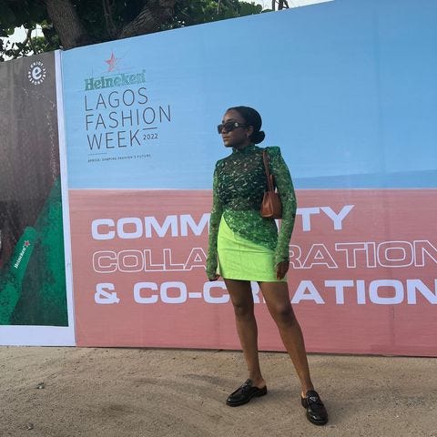 de la mode nigériane. Nombreux étaient les participants qui mélangeaient les marques de luxe africaines et internationales ; par exemple,